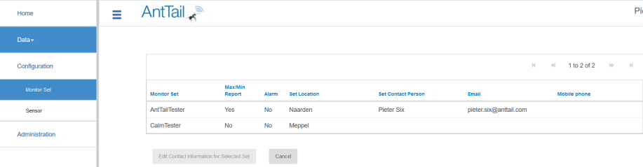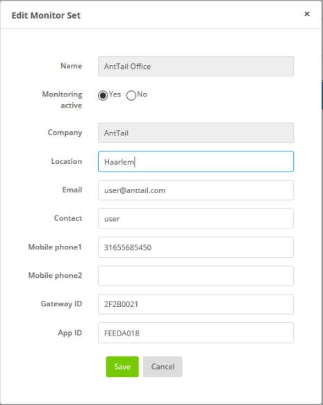- Contact: contact person for this monitor set. E-mails will be addressed to this person