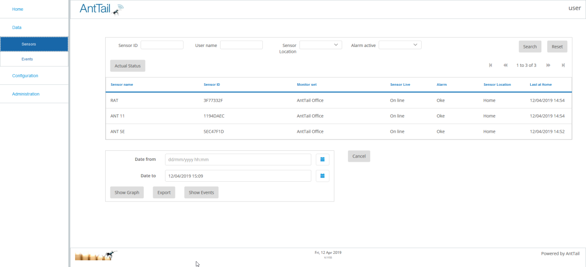 3. Show Events: Yields a list of events for the selected sensor and period.
